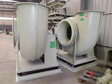 吸入風機內部的氣體在玻璃鋼風機葉輪的高速旋轉下被送入指定的容器(凈化塔或吸附塔等)內或直接排氣大氣環境中。