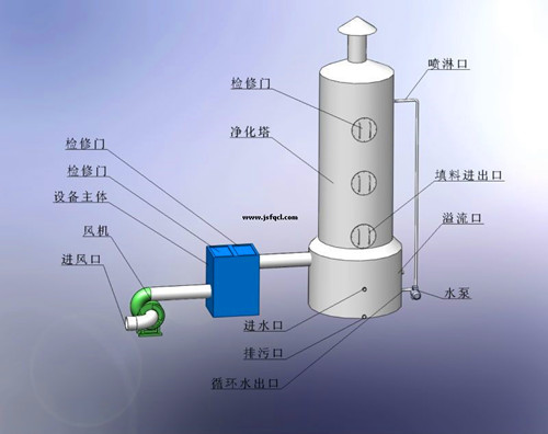 利用惡臭、有機廢氣中某些物質易溶于水的特性,通過玻璃鋼離心風機使惡臭、有機廢氣成分直接與水接觸,從而溶解于水達到去除目的。適用于水溶性、有組織排放源的惡臭、有機廢氣。工藝簡單,管理方便,設備運轉費用低,但產生二次污染,需對洗滌液進行處理;凈化效率低,應與其他技術聯合使用,對有機廢氣處理效果差。